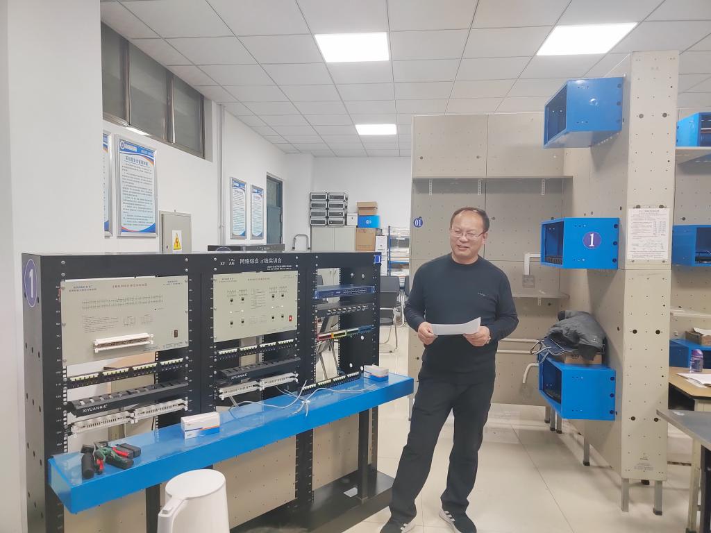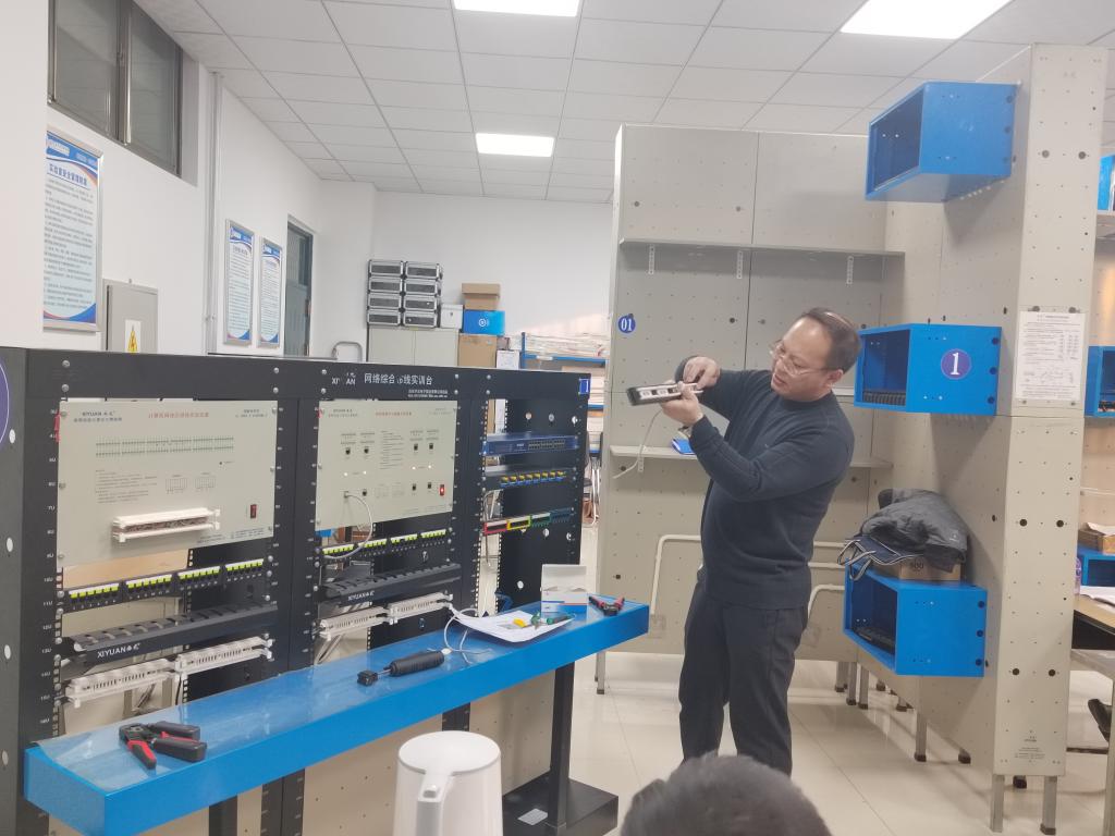 计算机应用技术专业教师李孝周,进行了综合布线课程中,网络永久链路的端接技能实训项目实践展示。
