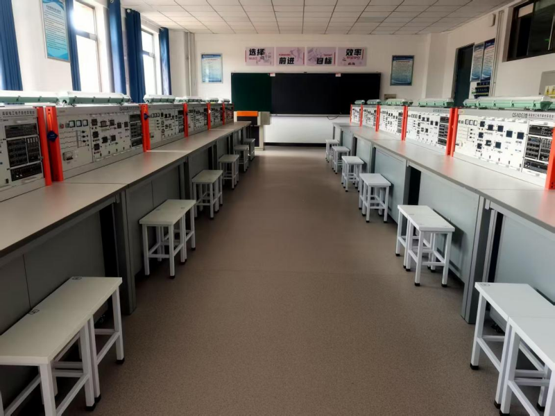 建于2024年,实训室现有QS-NDG3型高级电工电子综合实验台64套,同时配备数字万用表、指针万用表及示波器等仪器仪表。该实训室可同时容纳190人次,承担《电工技术》、《电工基础》《模拟电子技术》、《数字电子技术》等课程及相关实训。QS-NDG3型实验台面板上配置有可任意拆卸的直流电源、交流电源、信号源、交直流测量仪表、电工电子实验等功能模块,提供了电流型漏电保护和实验导线多重保护功能,确保人身及设备安全。本实验装置提供了基于Multisim的电路虚拟仿真软件,能够让员工更好的掌握电子电路的分析、设计、调试及测试。