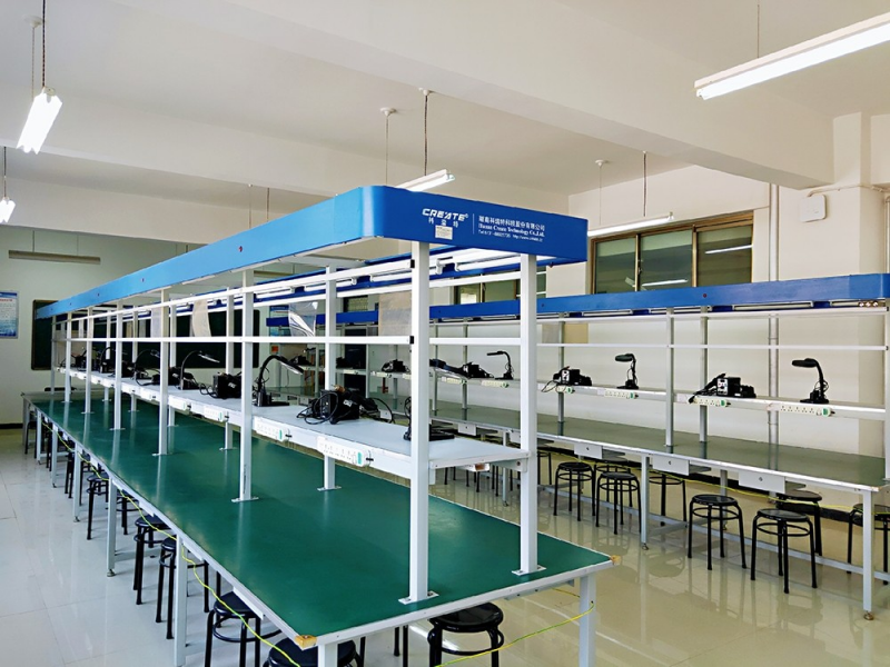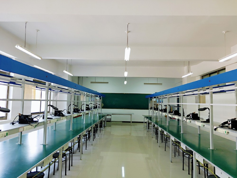 该实训室主要承担电子技术应用专业的《电工基础》《电子技术基础》《SMT表面组装技术》《电子设计与制作》等课程及相关实训,同时可对员工和社会进行岗位培训和职业技能鉴定,另外也可用于技能大赛训练。